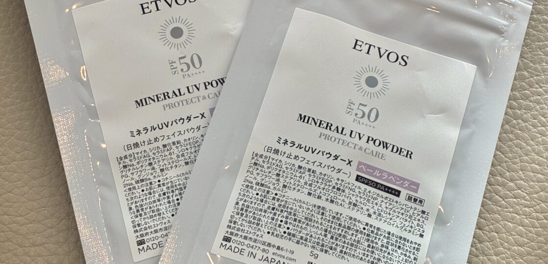 UVパウダー2026年2月2日Beauty, その他, ブログ葉月 ちひろ ほぼ無色でしっかりUVカットをしてくれる、さらさらパウダー。ペールラベンダーは肌に透明感を出してくれます。とても良いので詰め替え用を2袋購入しました。ETVOS ミネラルUVパウダー